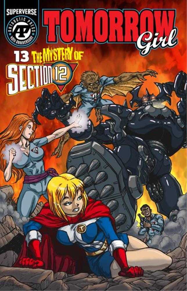 SUPERVERSE TITLE! ROBOTIC RAMPAGE! AMERICAN MANGA SUPERHERO! Giant robots are running amok, proving to be too much for even Tomorrow Girl to handle. She is met by a group of strange new heroes called Section 12. But are they allies or enemies? Plus Part 3 of 'The Origin of Tractor Lad' by Dan Collins!